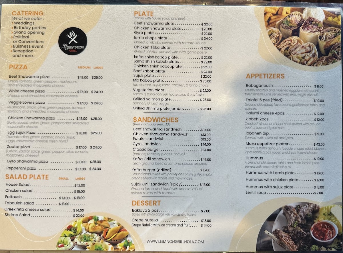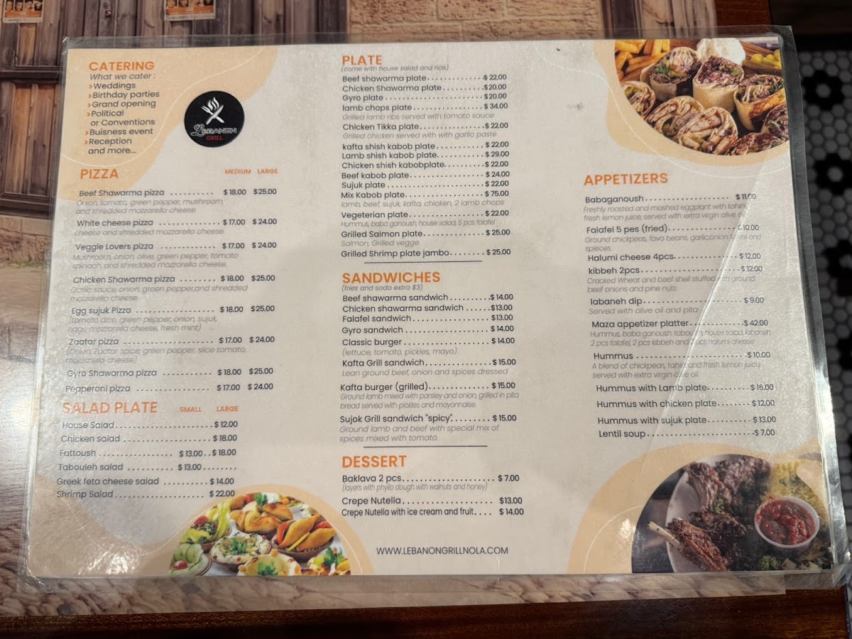Hummus, Babaganoush, Tabouleh, House Salad, Labaneh, 2pcs Falafel, 2pcs Kibbeh and 2pcs Halumi Cheese.